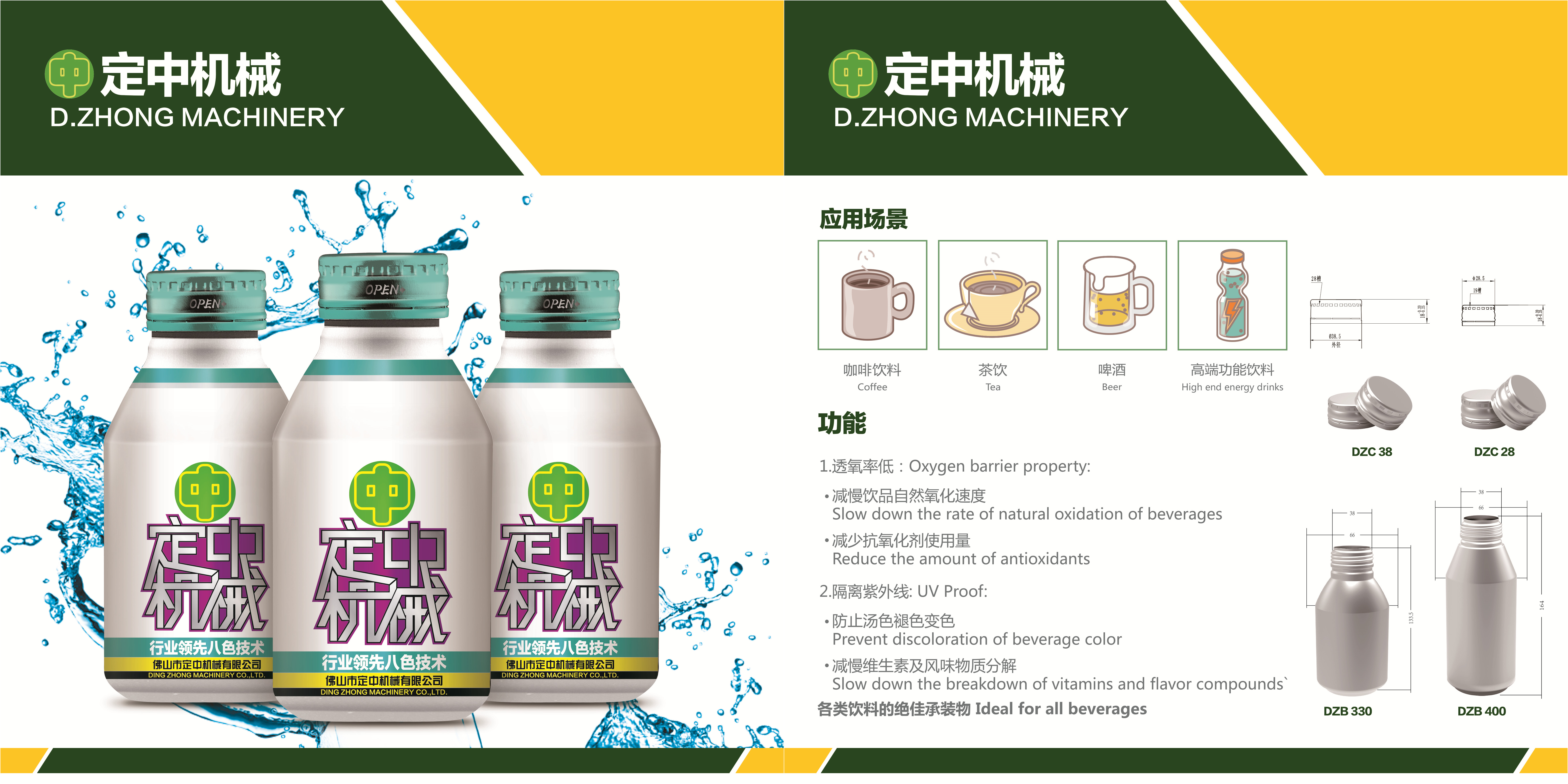 佛山市定中機械有限公司是廣東省為數(shù)不多的民營科技,高新企業(yè),雄鷹計劃支持企業(yè)。它是國內頗具規(guī)模從事設計、制造成套“皇冠瓶蓋(啤酒蓋)全自動生產線”產品的專業(yè)制造商。我們的定中牌“皇冠瓶蓋全自動生產線”產品已獲得多項國家專利。公司客戶遍布北京、上海、廣州、河南、山東、順德、昆明、長春、武漢、杭州、東莞、大理等全國多個大中型城市。定中機械不僅被國內盛名的大型包裝企業(yè)選用,而且現(xiàn)已遠銷西班牙、巴西、越南和菲律賓、肯尼亞等地,深得廣大客戶的認同和青睞。